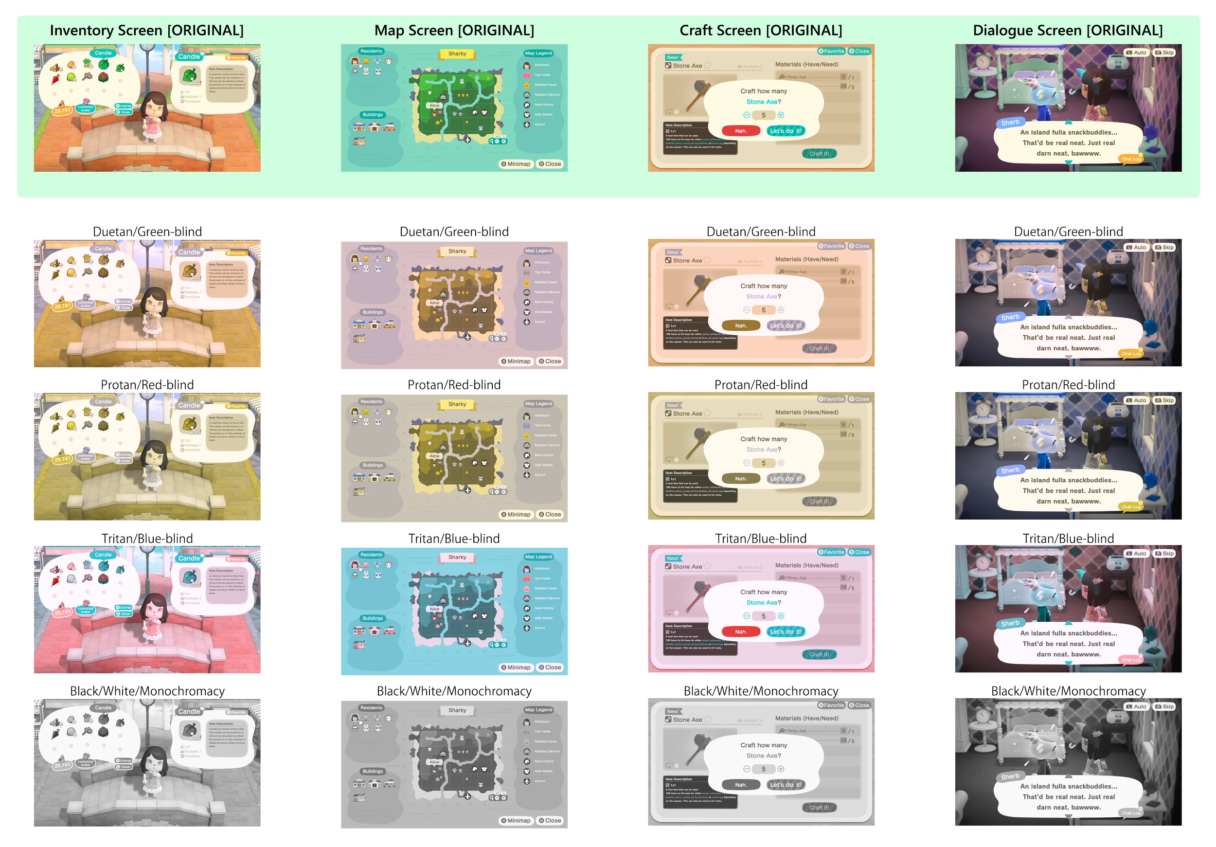 Based on the results from the color blindness check, I revised the screens with subtle revisions to bump up the contrast in order for players with visual impairment to be able to view the screens without any issues.